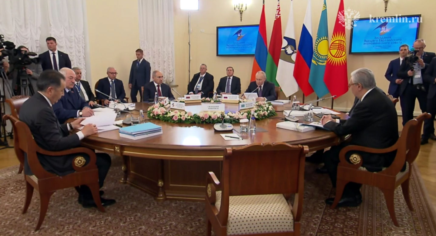 当地时间12月21日,欧亚经济联盟最高权力机构欧亚经济委员会最高理事会会议在俄罗斯圣彼得堡召开。会议第一阶段以小范围闭门形式举行,俄罗斯总统普京、白俄罗斯总统卢卡申科、亚美尼亚总理帕什尼扬、哈萨克斯坦总统托卡耶夫、吉尔吉斯斯坦总统扎帕罗夫以及欧亚经济委员会执委会主席萨金塔耶夫出席会议。