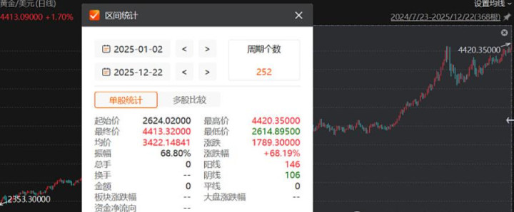 两年前如果有人信誓旦旦地跟你说,黄金价格会一路杀到每盎司4400美元,你大概率会觉得这人如果不是疯了,就是在讲一个毫无幽默感的段子。但现在现实直接把这个“段子”砸在了所有人的脸上。
