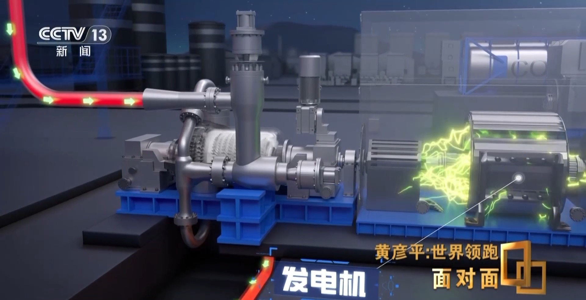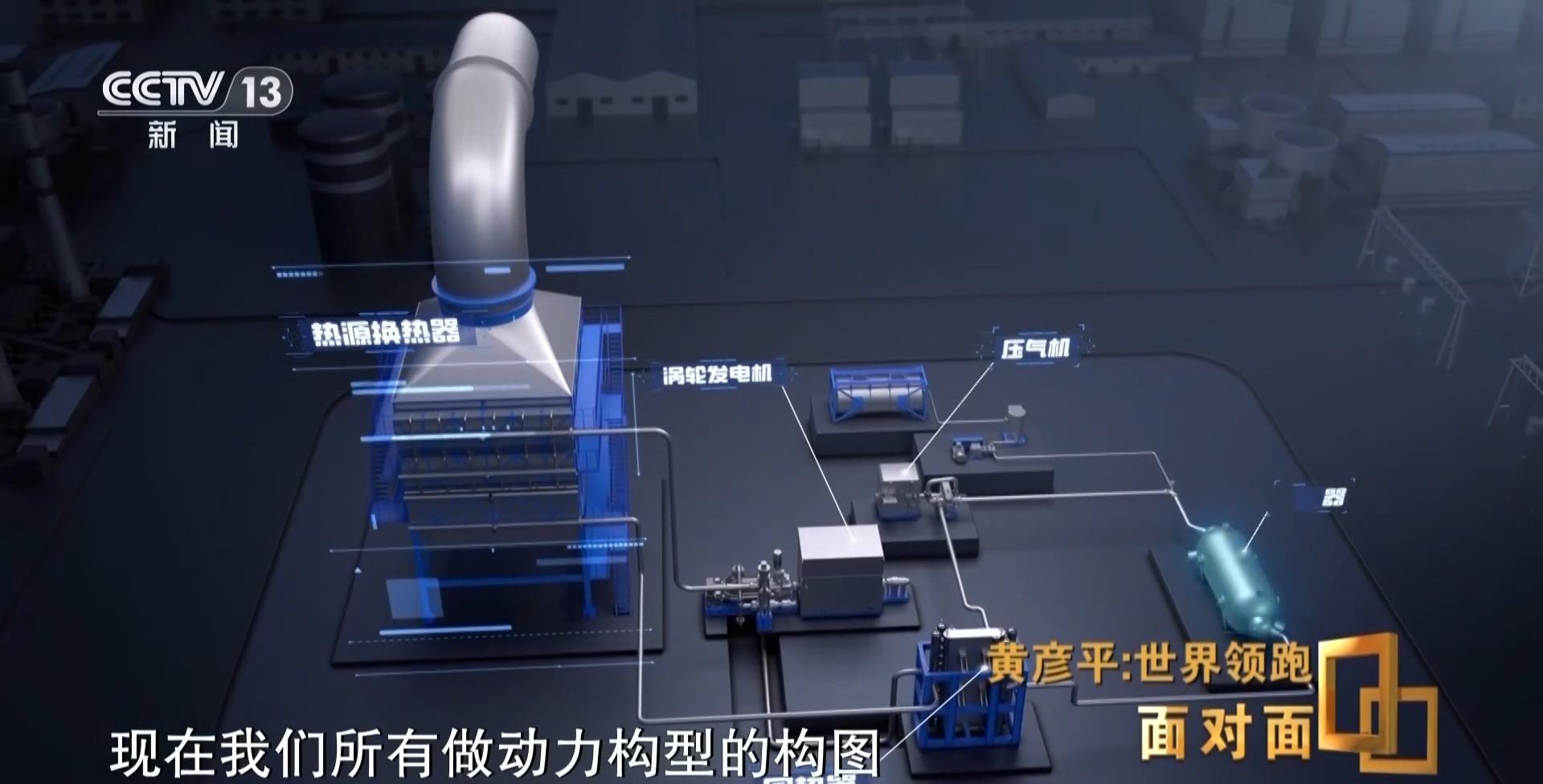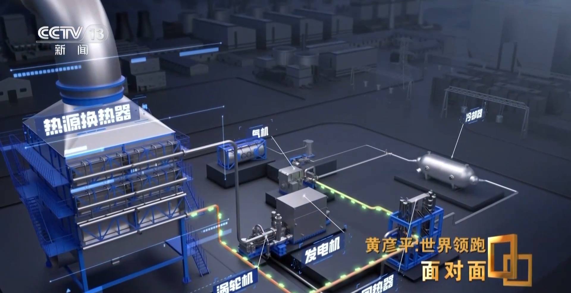 黄彦平:二氧化碳从加热到吸热,进了透平机,它就释放了能量,推动涡轮机转动之后带电机发电。
