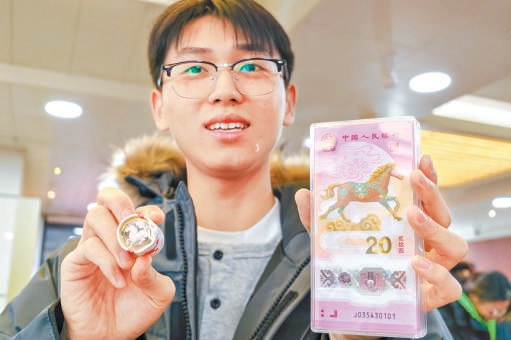 图为市民展示刚兑换的马年贺岁纪念币钞。北京日报记者 邓伟摄